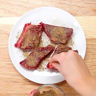Now, season the steak by making a cumin and coriander spice rub for the steak.